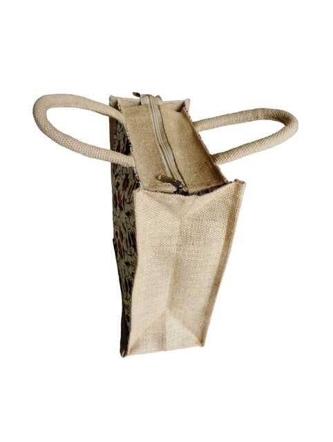 PB29-3D Stork Printed Jute Lunch bag